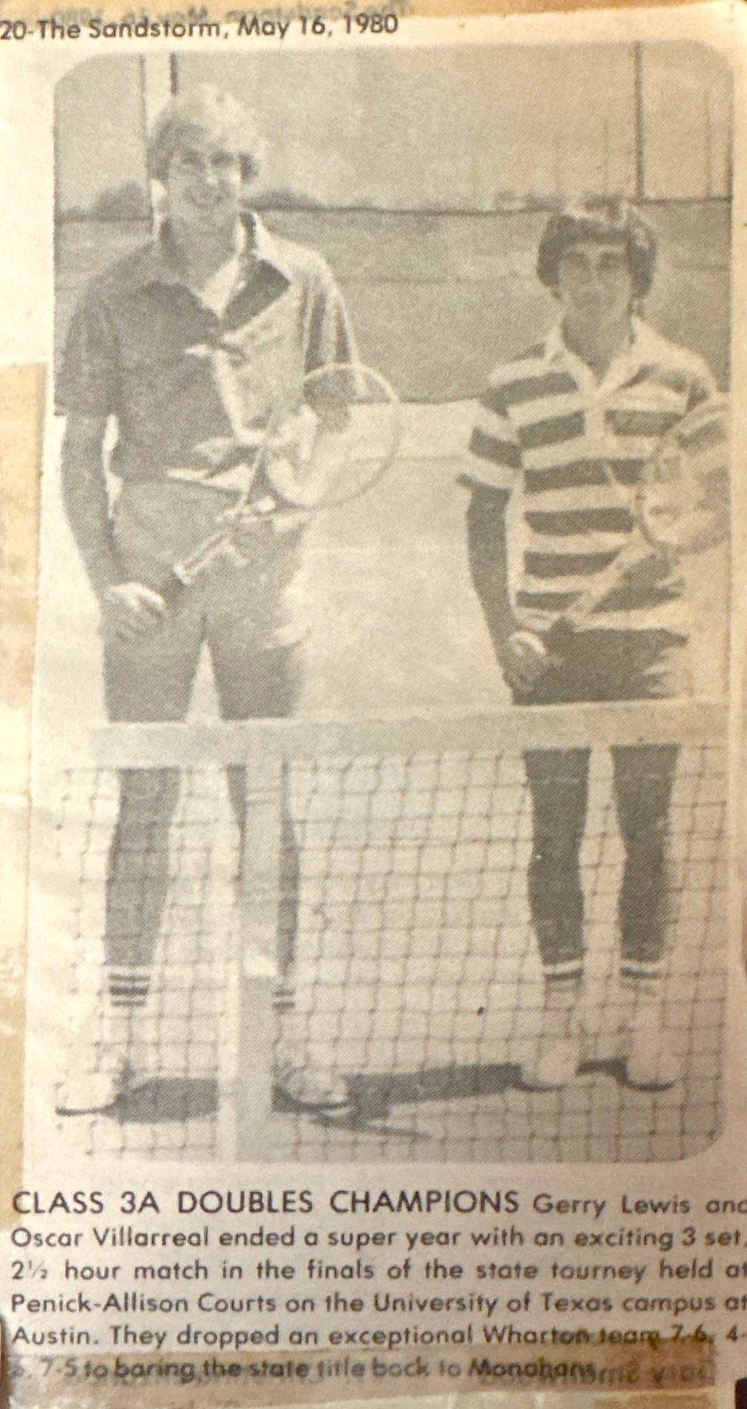 My doubles partner, Oscar Villarreal, and I won a state tennis championship.