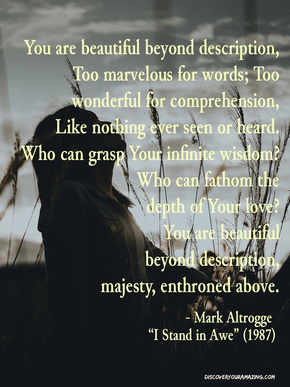 My hymn text today—“I Stand in Awe of You”—always makes me think of my former associate pastor/forever friend and brother, Greg Duke. He’s the one who introduced me to this song many years ago when we served together at Eagle Mountain Baptist Church.